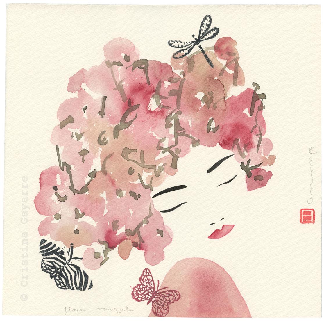 «Cristina Gayarre combina su pasión por los grabados, las acuarelas y el collage con la de ilustradora de libros y pintura de murales. Sus comienzos expresionistas han ido evolucionando en trazos más serenos y sensuales.» – Entrevista-de-hortensia-mañas/